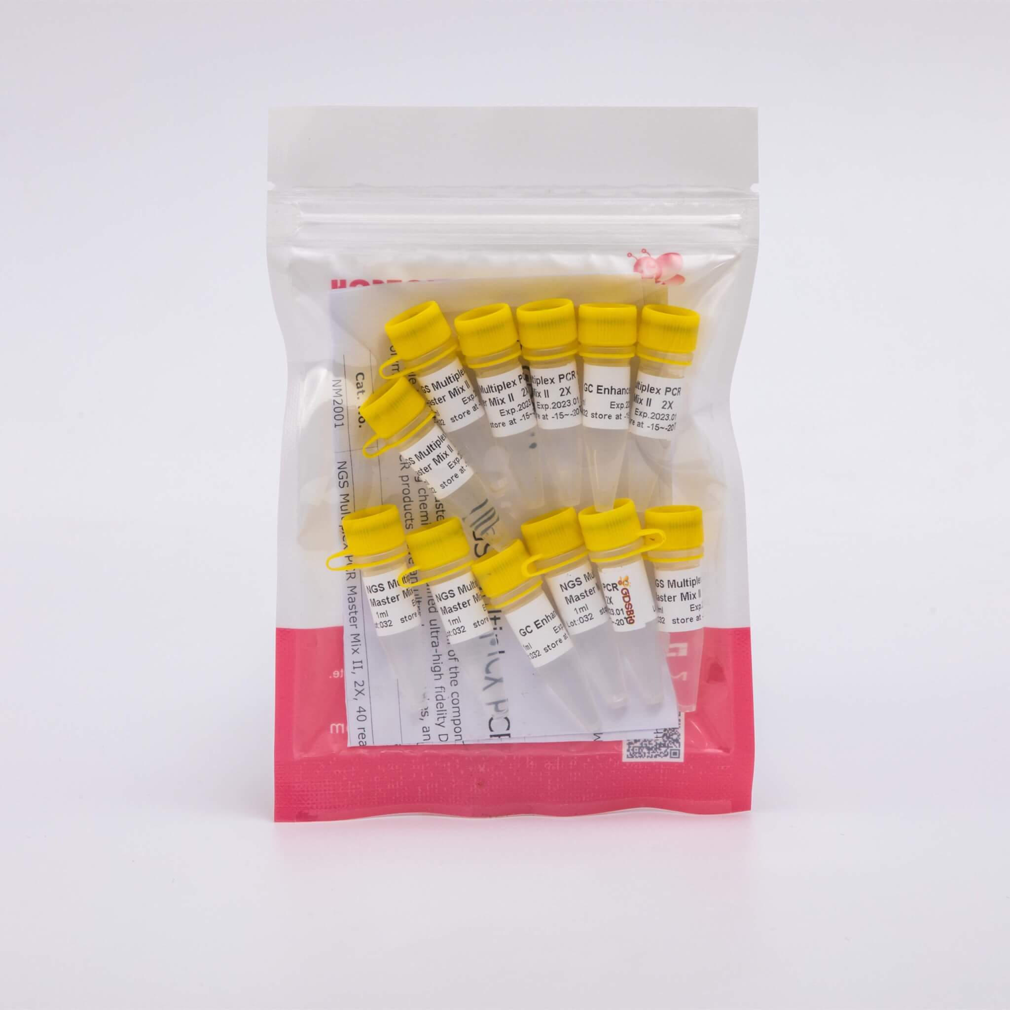 NGS Multiplex PCR Master MixIII是用于NGS無偏好(hao)靶向擴增(zeng)的PCR?Master Mix。通過優化(hua)酶和緩沖液(ye),本產品顯著提高了對GC/AT富集擴增(zeng)成(cheng)功(gong)率及擴增(zeng)效率一(yi)致性。不同GC含量的引物可以(yi)采用統(tong)一(yi)的退(tui)火溫度55℃,能實(shi)現無偏好(hao)PCR擴增(zeng)、高達10000重(zhong)(zhong)Multiplex?PCR,可以(yi)用于病毒、微(wei)生(sheng)物、腫瘤/遺傳DNA靶向NGS測序(xu)。同時可用于長片段多(duo)重(zhong)(zhong)PCR,最長可達20kb,滿足三代測序(xu)長片段多(duo)重(zhong)(zhong)擴增(zeng)需求。